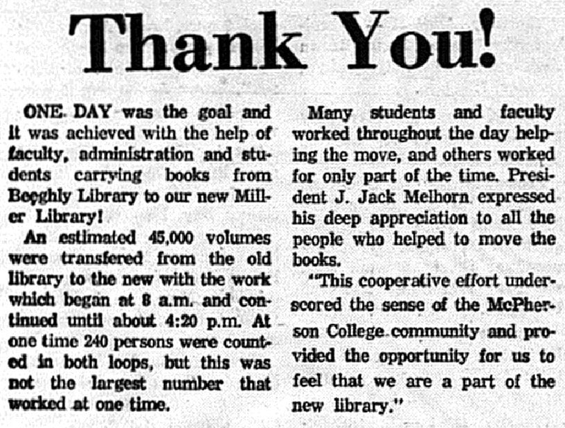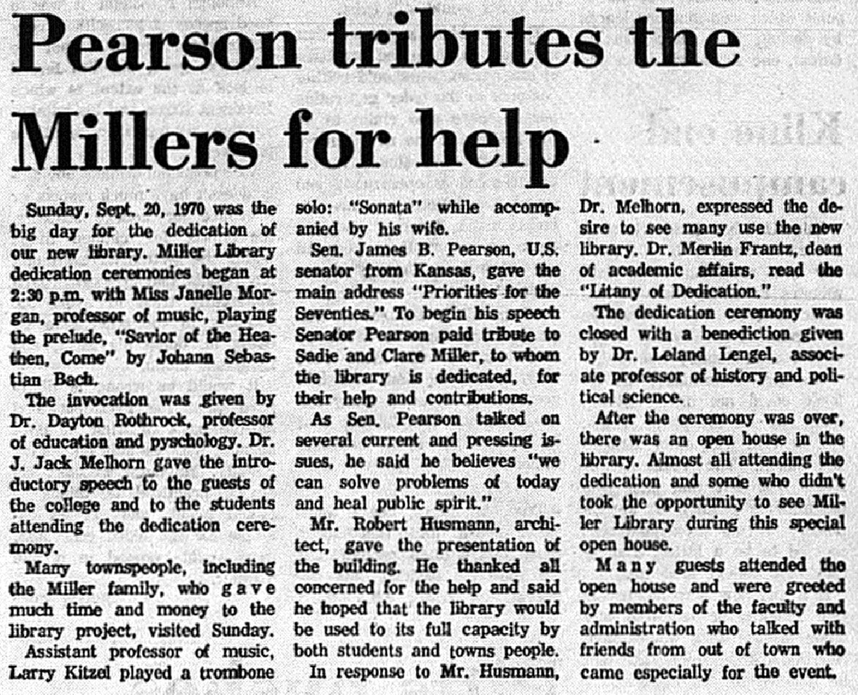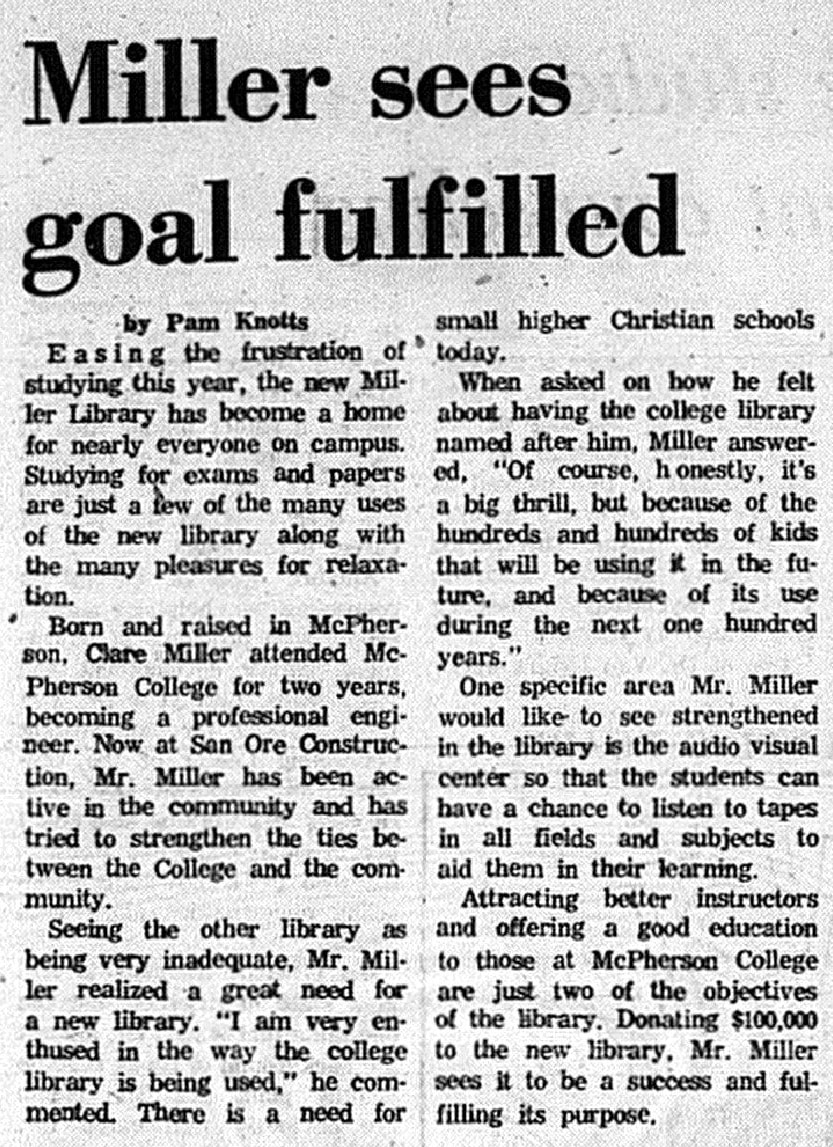 Since being dedicated on September 20, 1970, Miller Library has served generations of McPherson College students as the campus’s academic hub.
