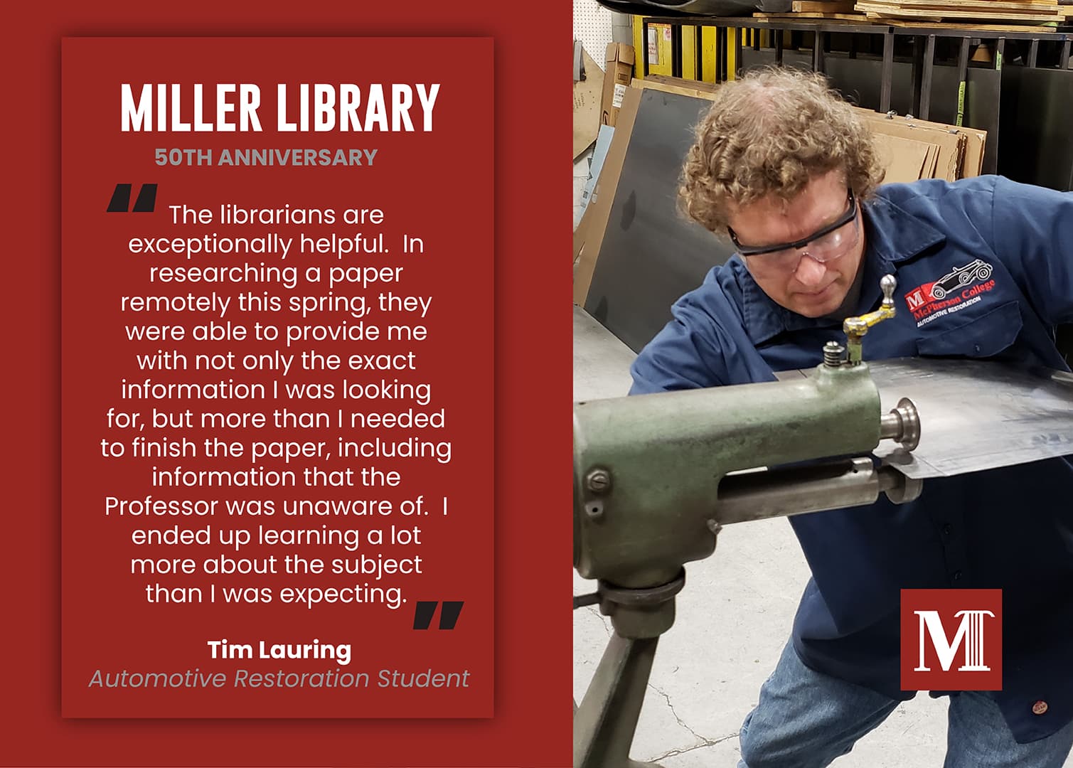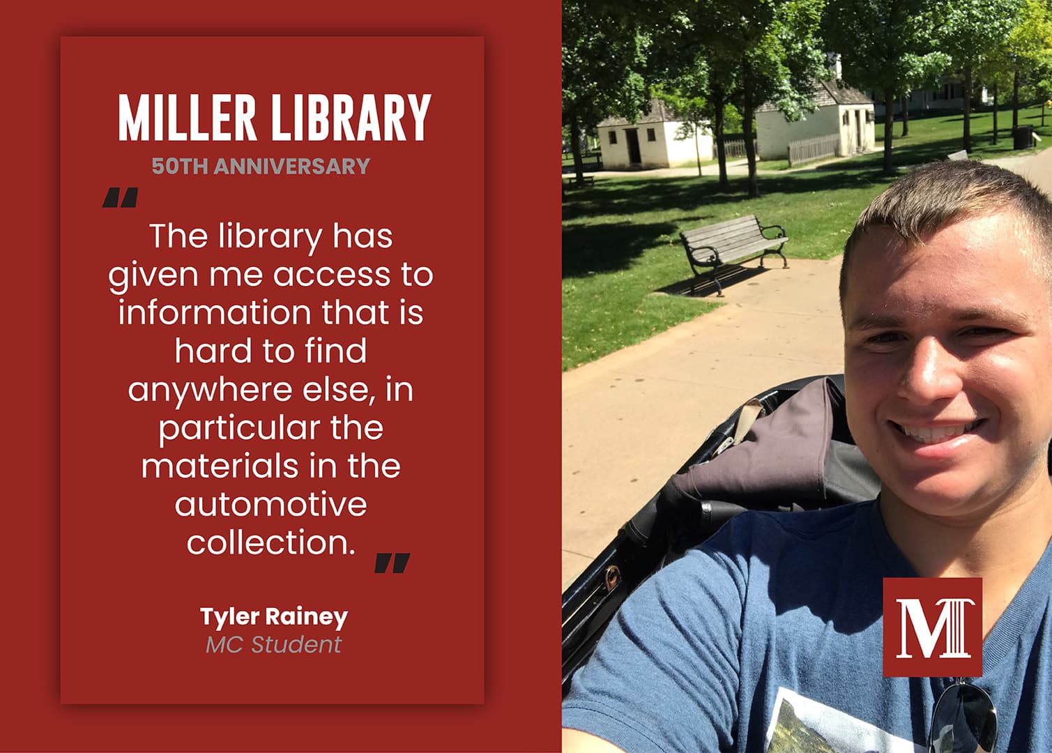 Please join us in our celebration of Miller Library’s 50th+1 Anniversary on Saturday, October 2 from 11 a.m. to 1 p.m. We will have refreshments, a Scholastic book fair, a library history display, the Kansas Library Association Centennial quilt display, and videos showcasing past librarians and staff. We will also provide tours of the new Auto Restoration space on the second level as well as the rest of the library.
