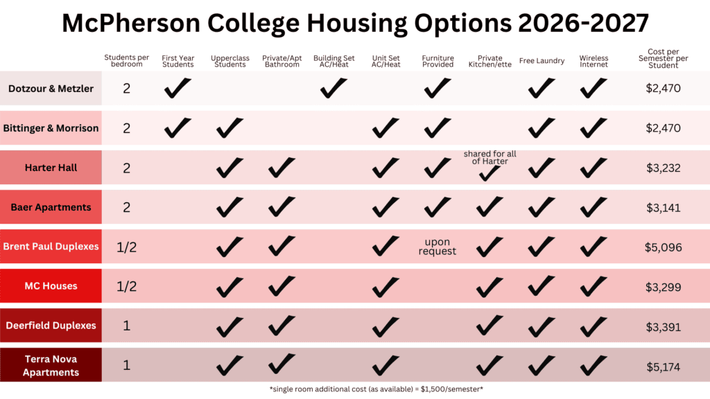 McPherson College has a variety of residential areas for specific population groups:
